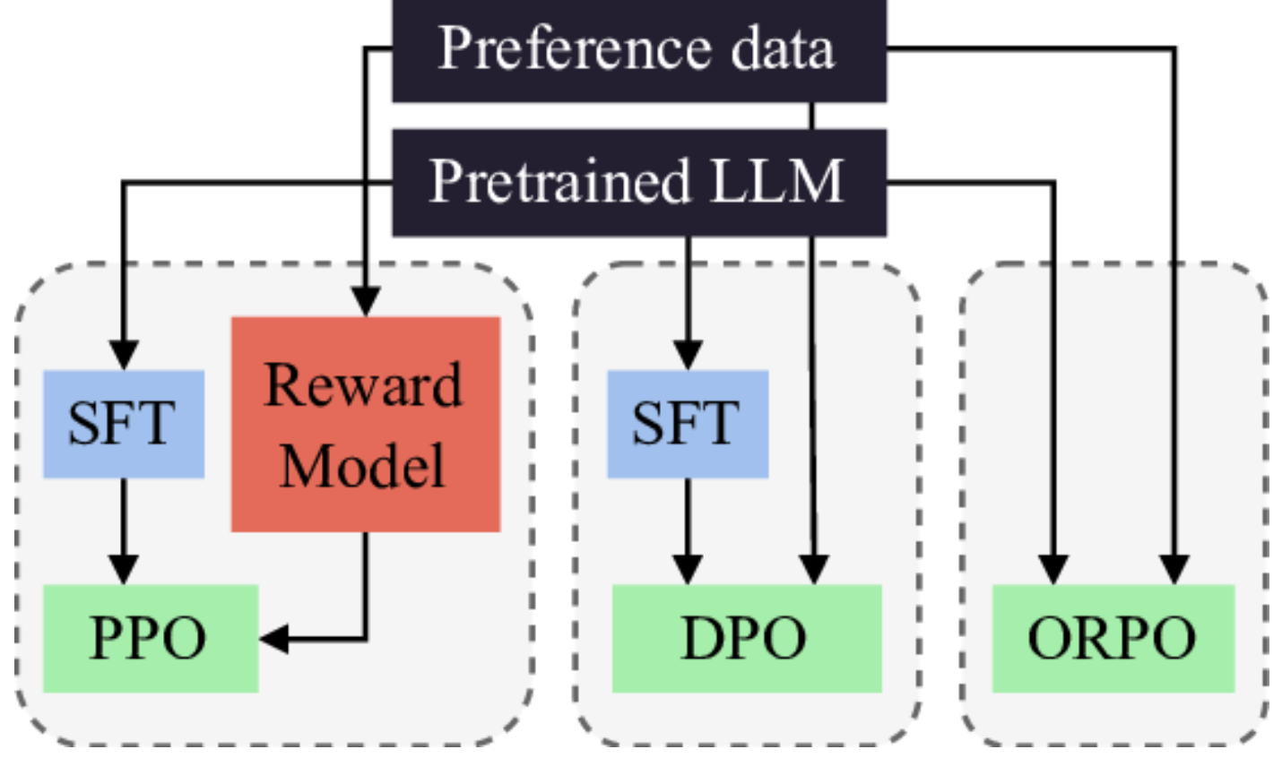 하지만 ORPO는 한번의 페이즈에서 두 학습을 동시에 진행한다.