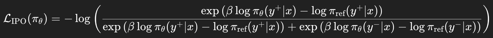 주어진 답변쌍(y_+, y_-) 데이터에 대해 목적 함수 L_DPO를 최소화한다.