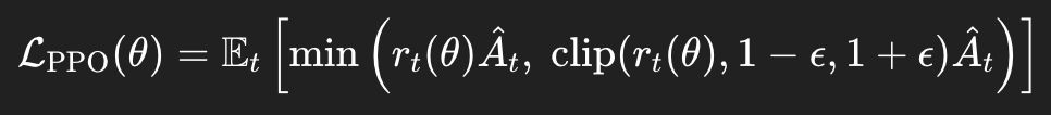 클리핑된 목적 함수 L_PPO를 최대화한다.