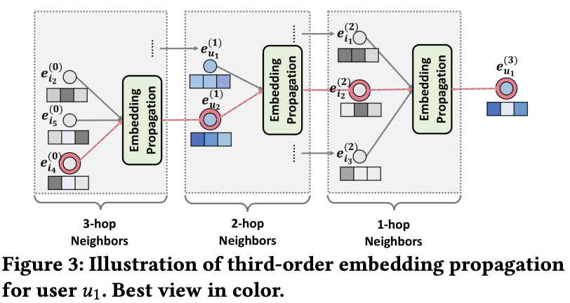 이를 통해서 유저-아이템 그래프의 high-order connectivity를 학습할 수 있다.