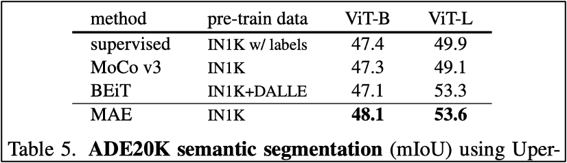 이 모델은 오직 바닐라 ViT에 기반한 것이며, 더 발전된 모델은 더 좋은 결과를 얻을 수도 있다. (ex. BEiT, DeiT, DaViT, etc.)