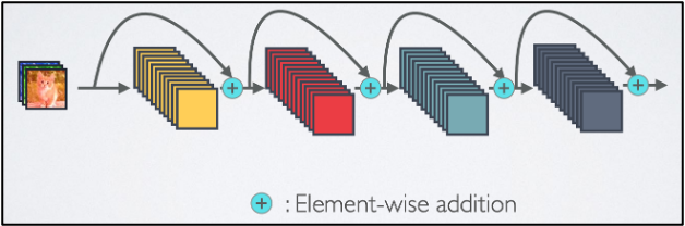 ResNet은 feature를 결합할때 element-wise summation을 사용한다.
