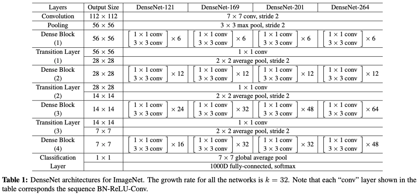 위에서 말한 transition layer를 통해서 피쳐맵을 줄일 수 있다. (=압축)