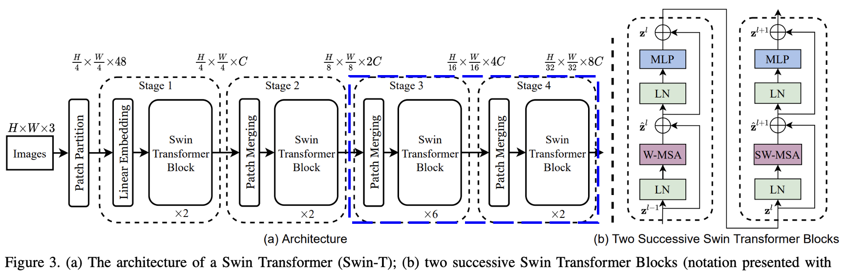 swin transformer block은 토큰의 갯수에는 영향을 주지 않는다. (H/4 x W/4 유지)