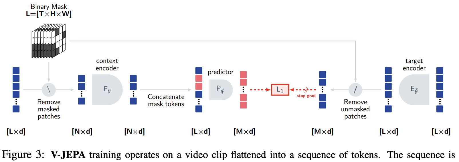 저자들은 이 아키텍처를 비디오와 마스킹에 적용해 V-JEPA를 구상했다.