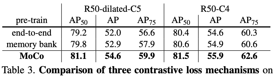 memory bank 모델은 K가 커질 수는 있으나 MoCo 보다 좋지 않다.