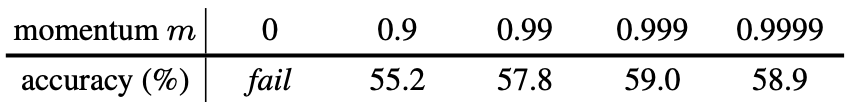 그래서 이 문제를 해결하기 위해 모멘텀 업데이트를 제안했다.