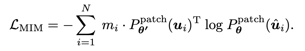 MIM은 x햇에서 마스킹된 토큰 x틸드를 받아 원래 이미지 토큰 x을 복원(reconstruction) 한다.