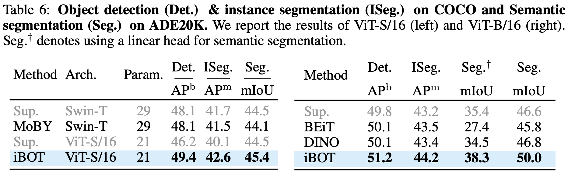 DINO가 iBOT과 유사한 방법의 학습을 먼저 제안했으나 둘은 좀 다르다.