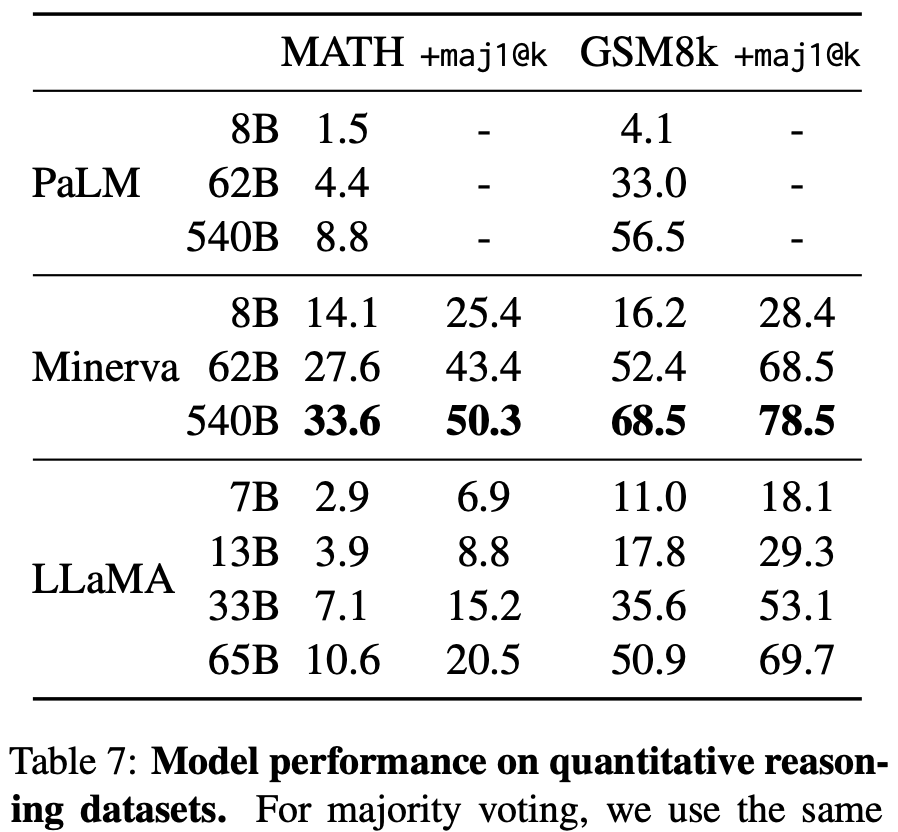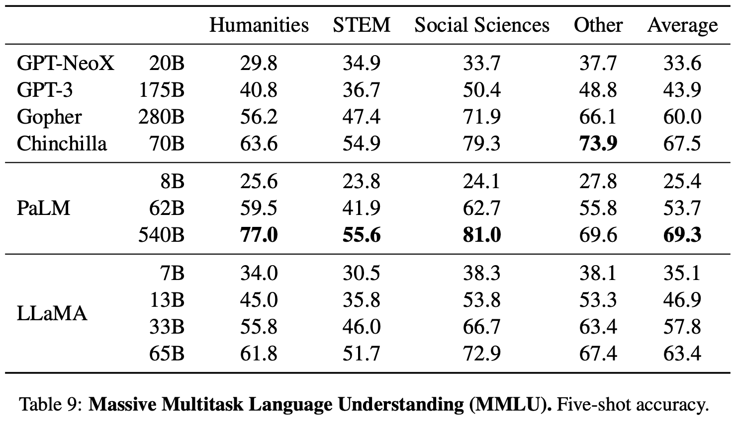 주로 GPT-3, Gopher, Chinchilla, PaLM 등과 비교했다.