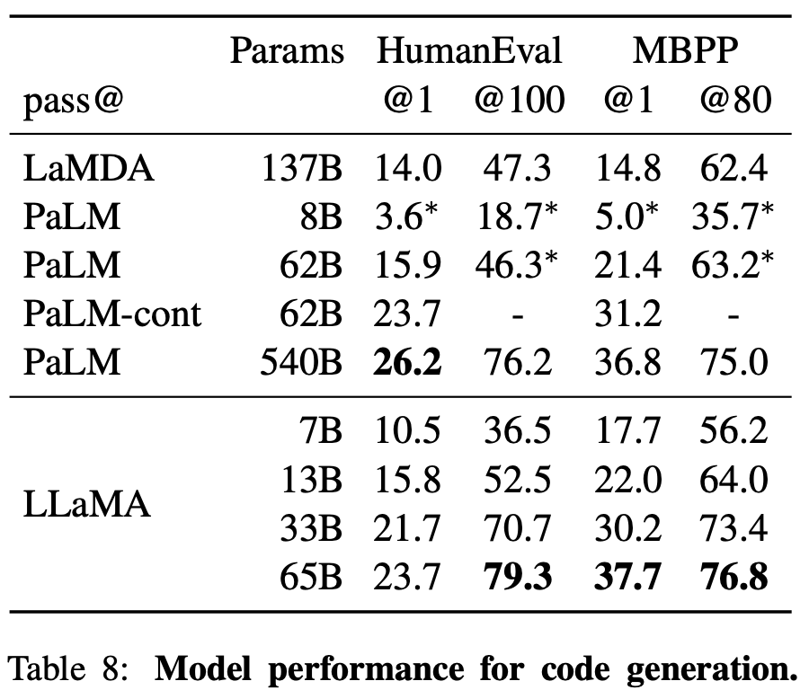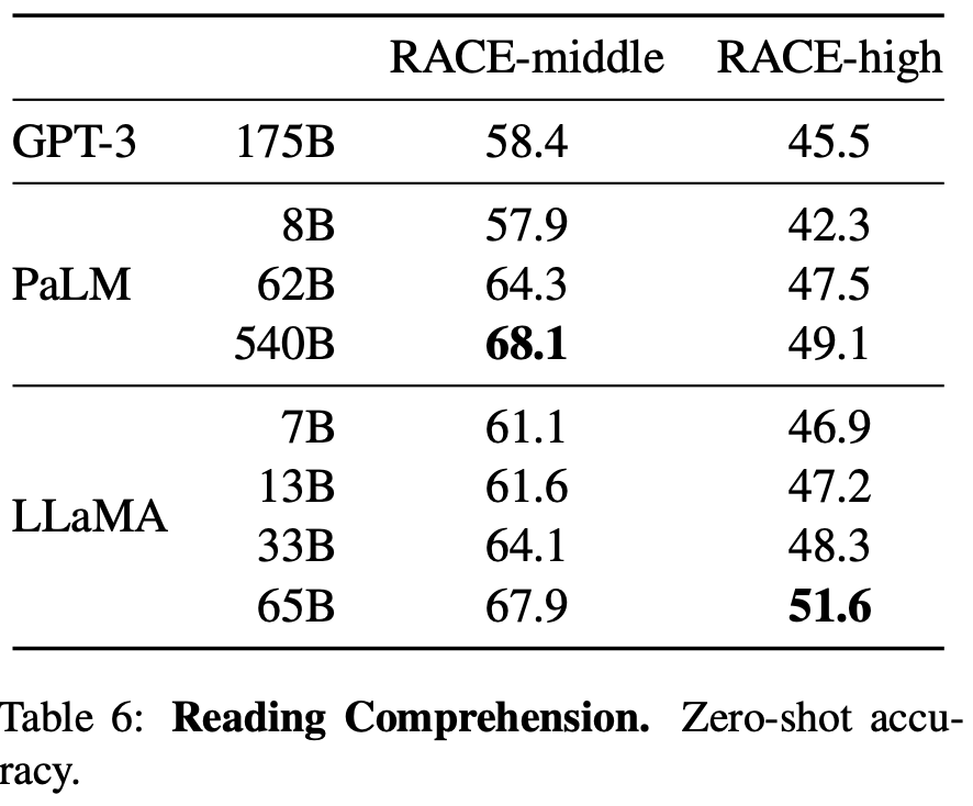 특이한 점은 ARC는 65B 보다 13B 에서 더 좋은 성능을 보인다.