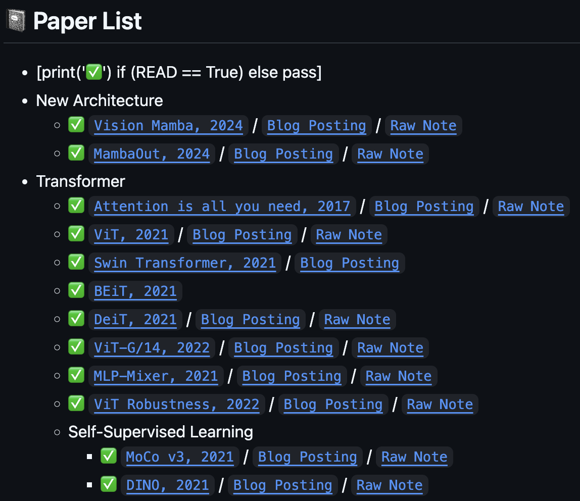 그래서 일부 논문들의 링크는 나의 깃허브에 정리되어 있으니 타고 들어가도 된다.